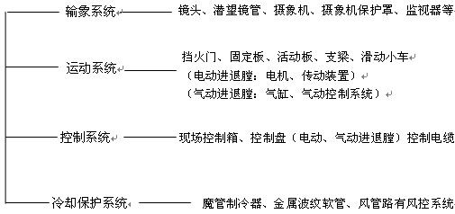 電動及氣動進(jìn)退膛電視監(jiān)視裝置,在冷卻風(fēng)出現(xiàn)斷風(fēng)故障時(shí),能自動將潛望鏡管退出爐膛,以免燒壞輸象系統(tǒng),操作人員也可在控制室內(nèi)通過控制盤上的操作按鈕或電腦控制潛望鏡管的進(jìn)退爐膛。